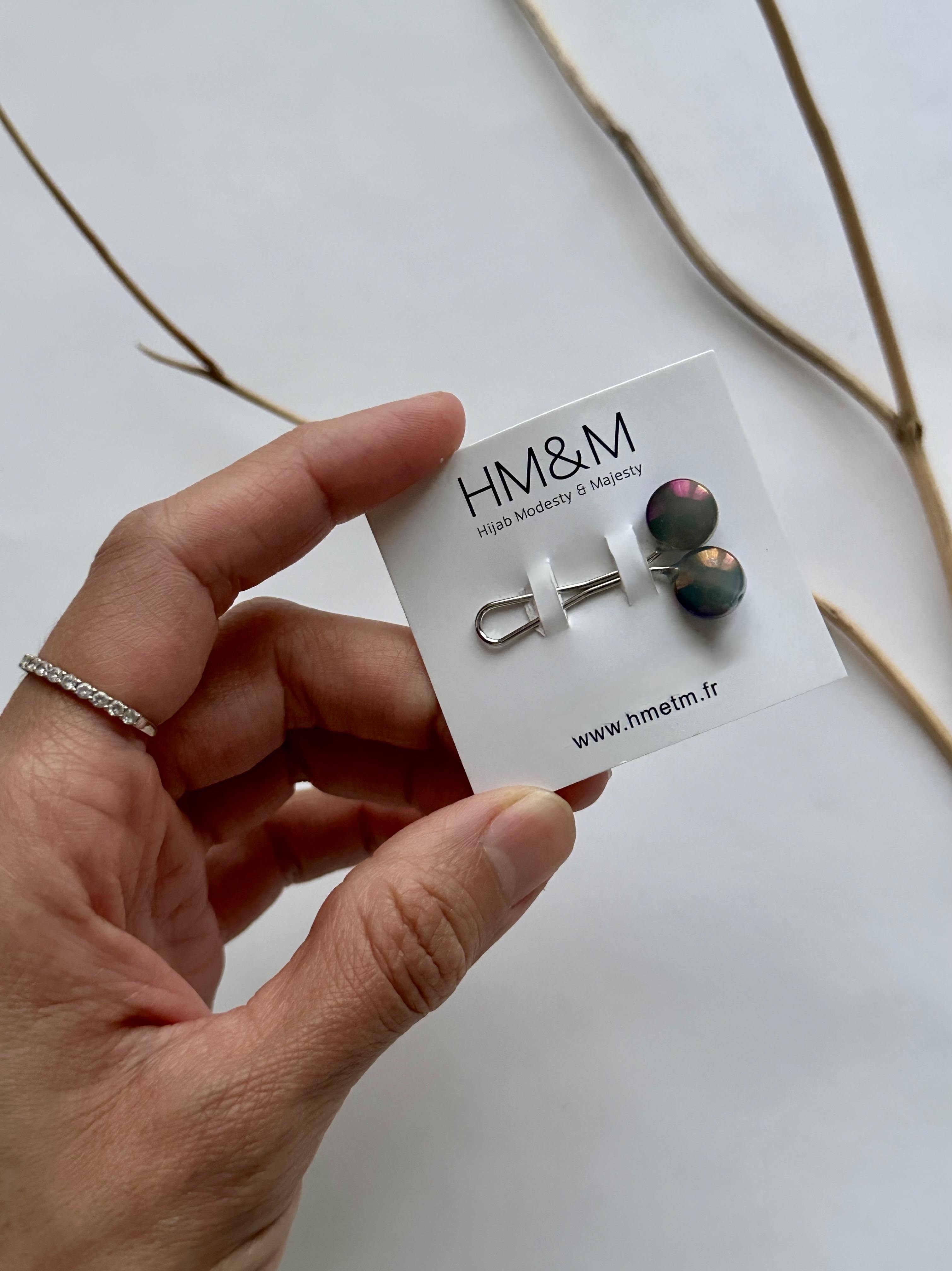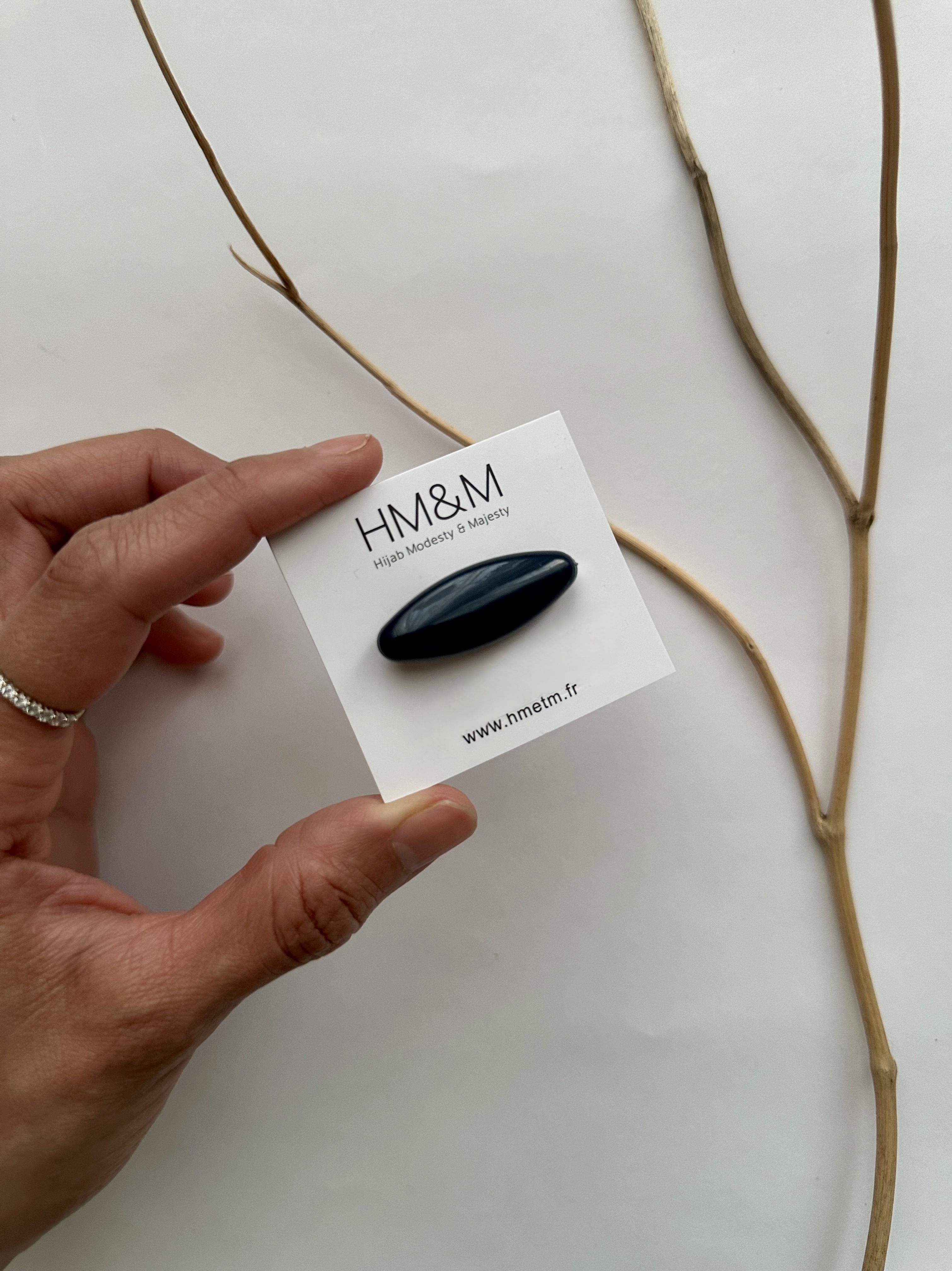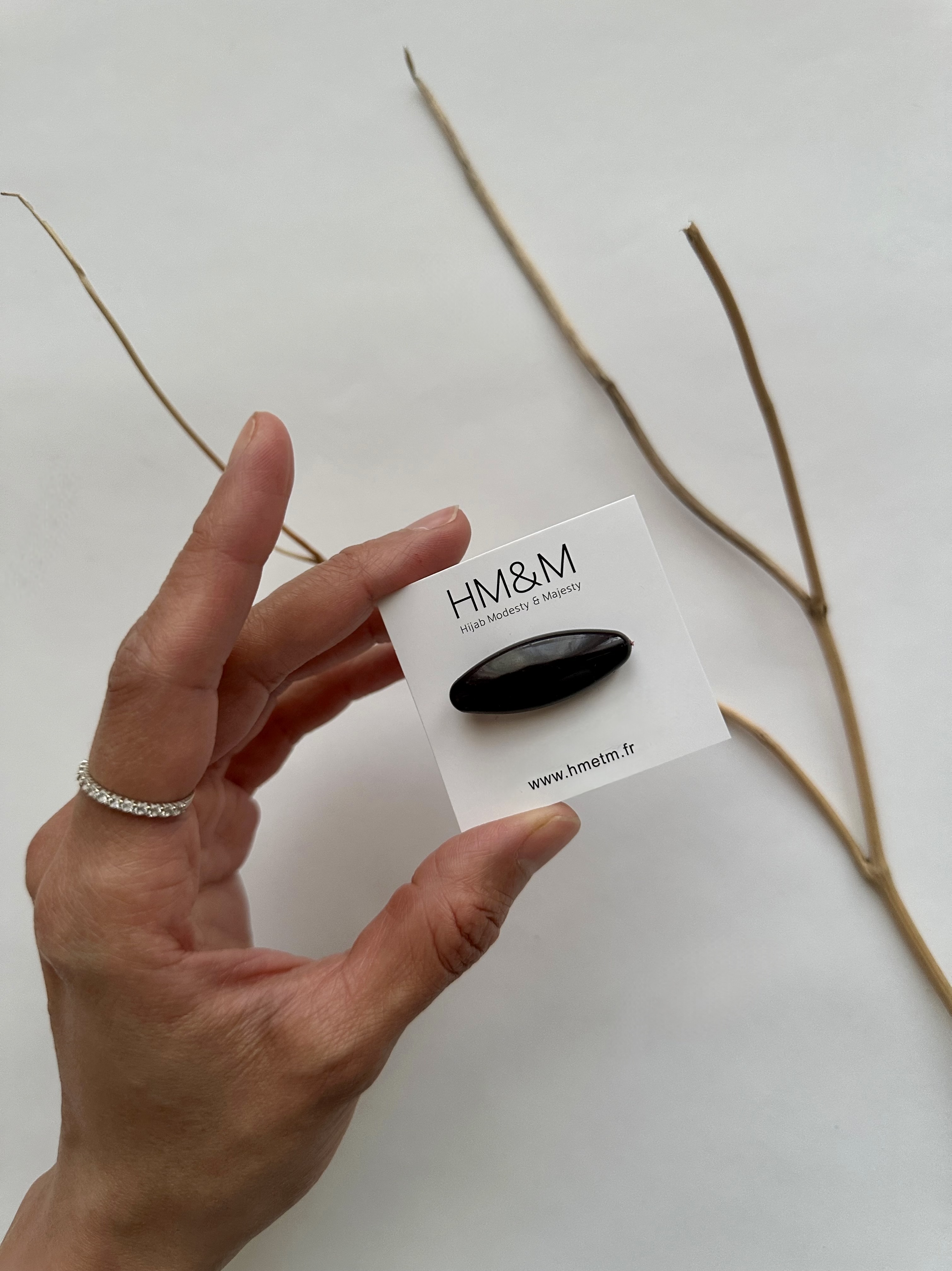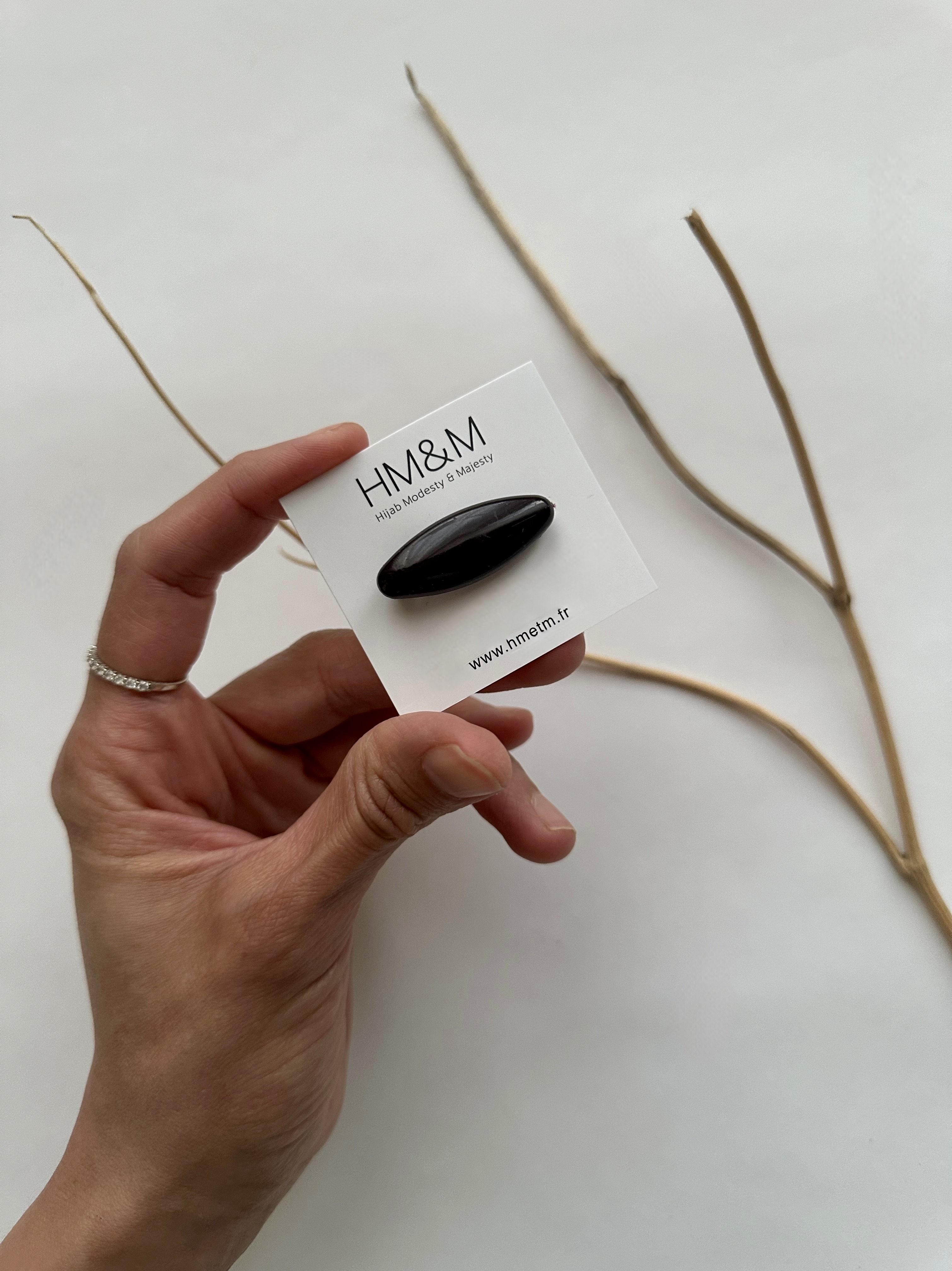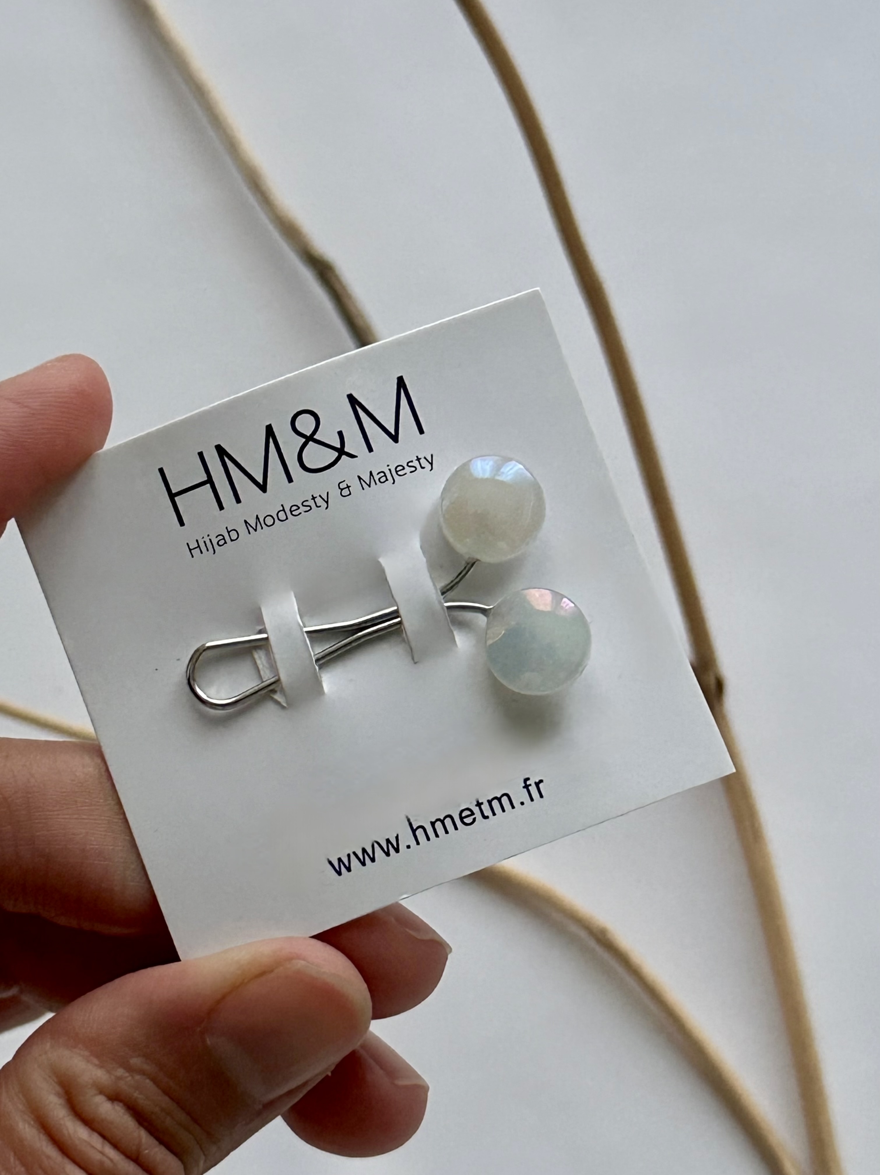 Une pince qui vous permet de nouer votre hijab en quelques instants sous votre menton ou derrière votre nuque, sans risquer de vous piquer et sans faire de trous à votre voile. Un joli design...