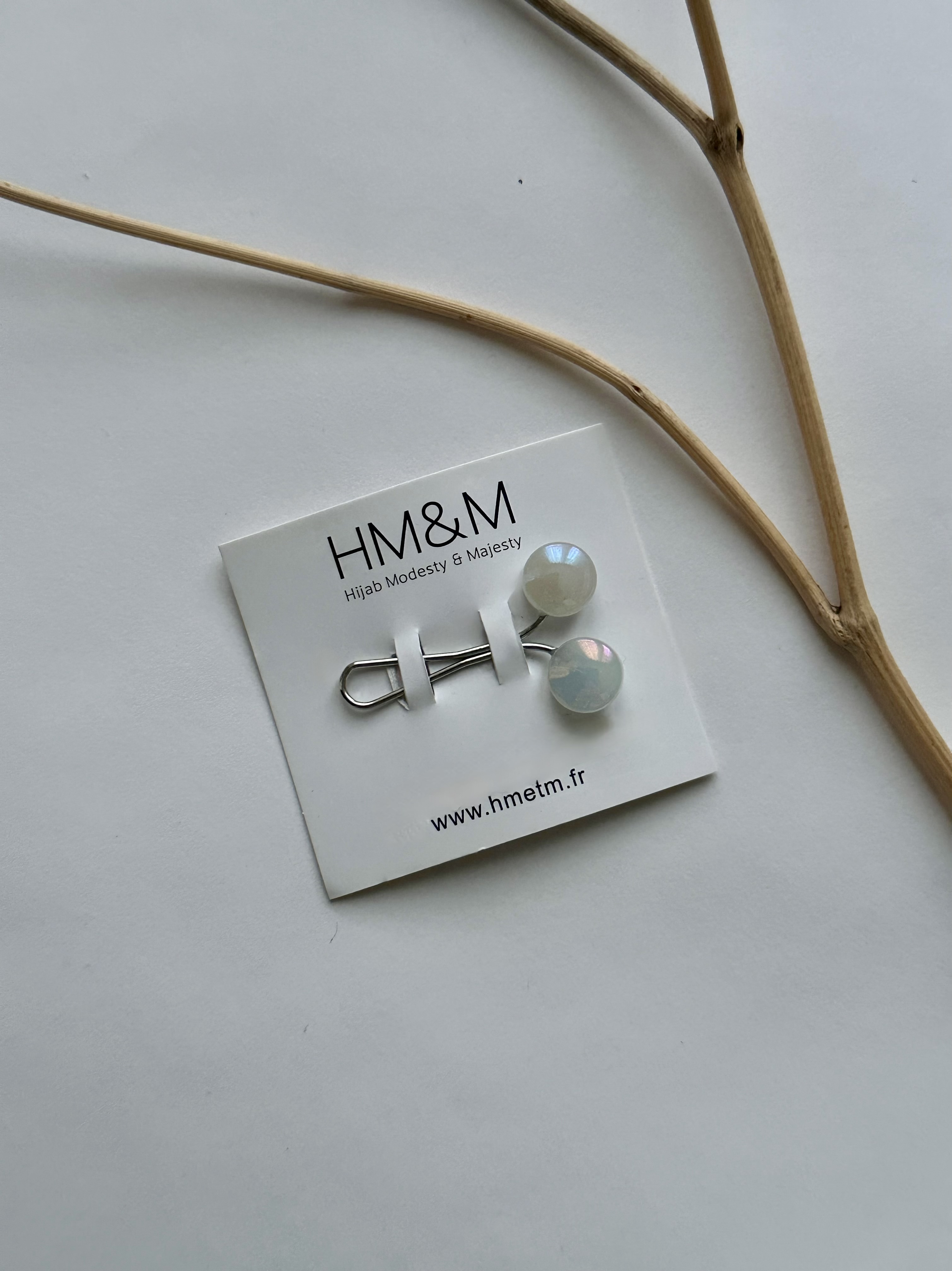Une couleur nacrée, une forme douce et arrondie, des perles plates originales. Méthode d'utilisation: Maintenir les deux pans du hijab ensemble et les pousser dans la pince (pousser sur la pince...