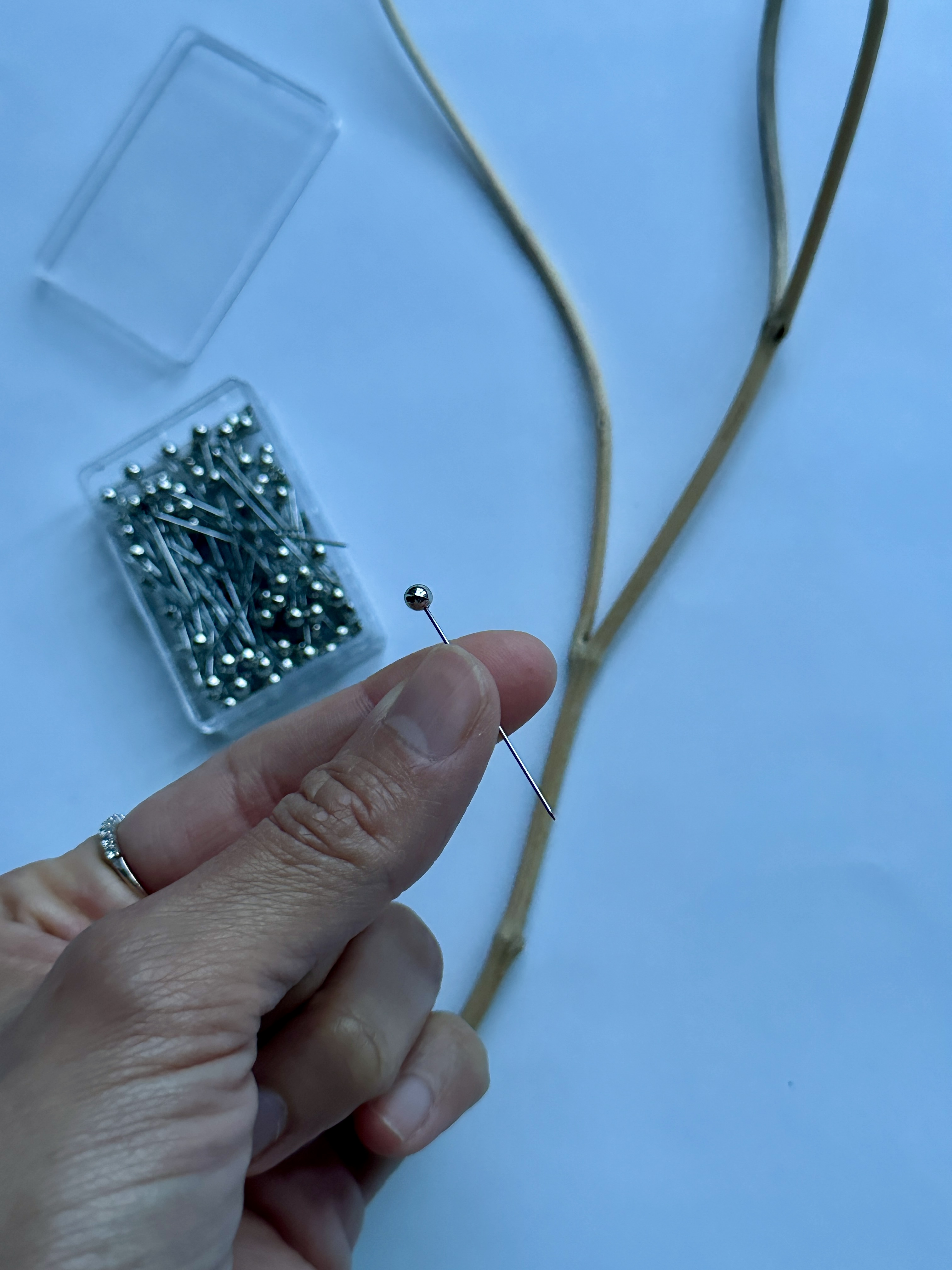 Boîte contenant environ 100 pièces d'aiguilles à embout doré. Elles seront idéales pour fixer votre voile à votre vetement. Evitez de les pincer entre vos lèvres quand vous vous appretez à les...
